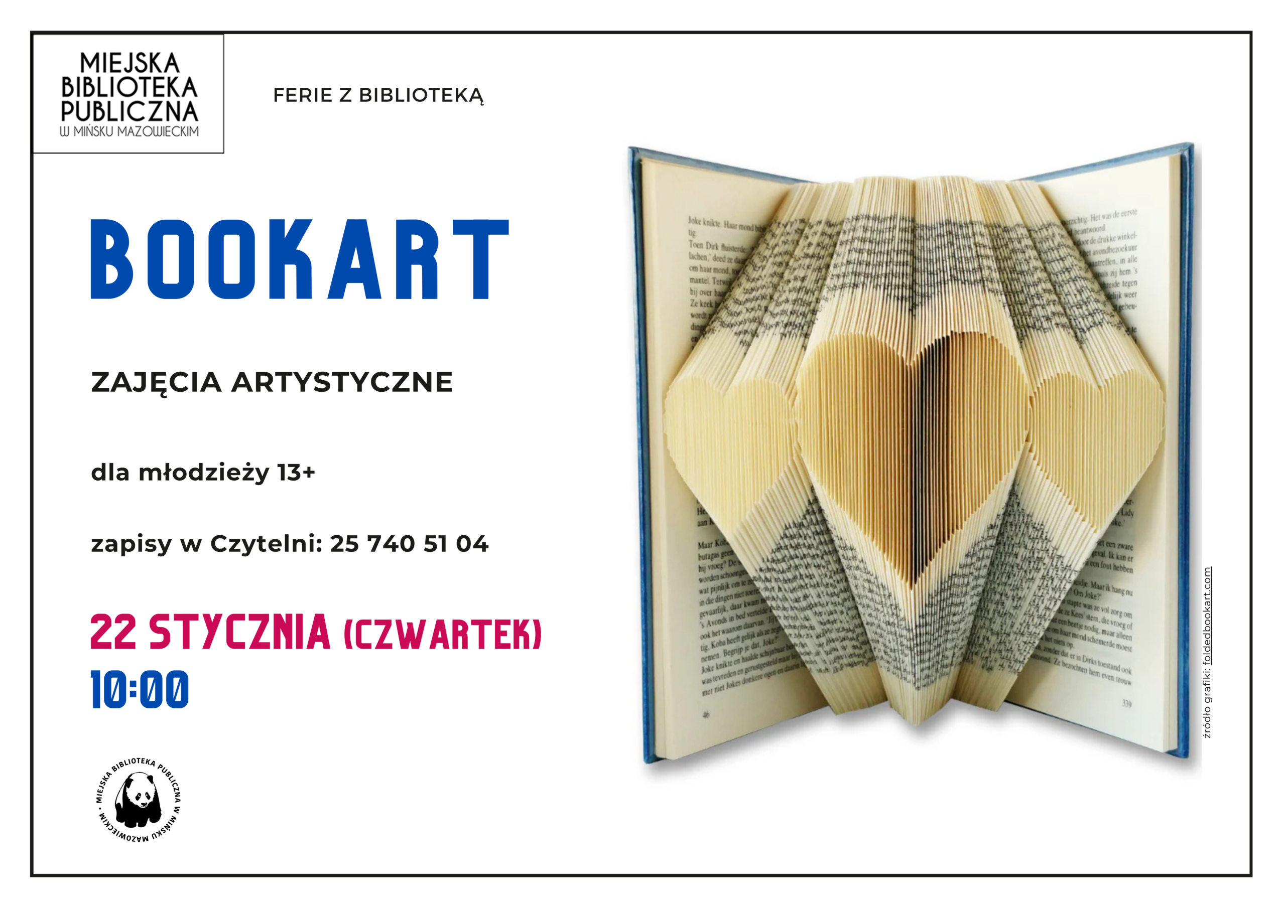 Bookart Zajęcia artystyczne da młodzieży 13+, zapisy w Czytelni. 00 dni 00 godzin 00 minut 00 sekund Data 22 stycznia, 2026 Czas 10:00 Kategoria dla młodzieży