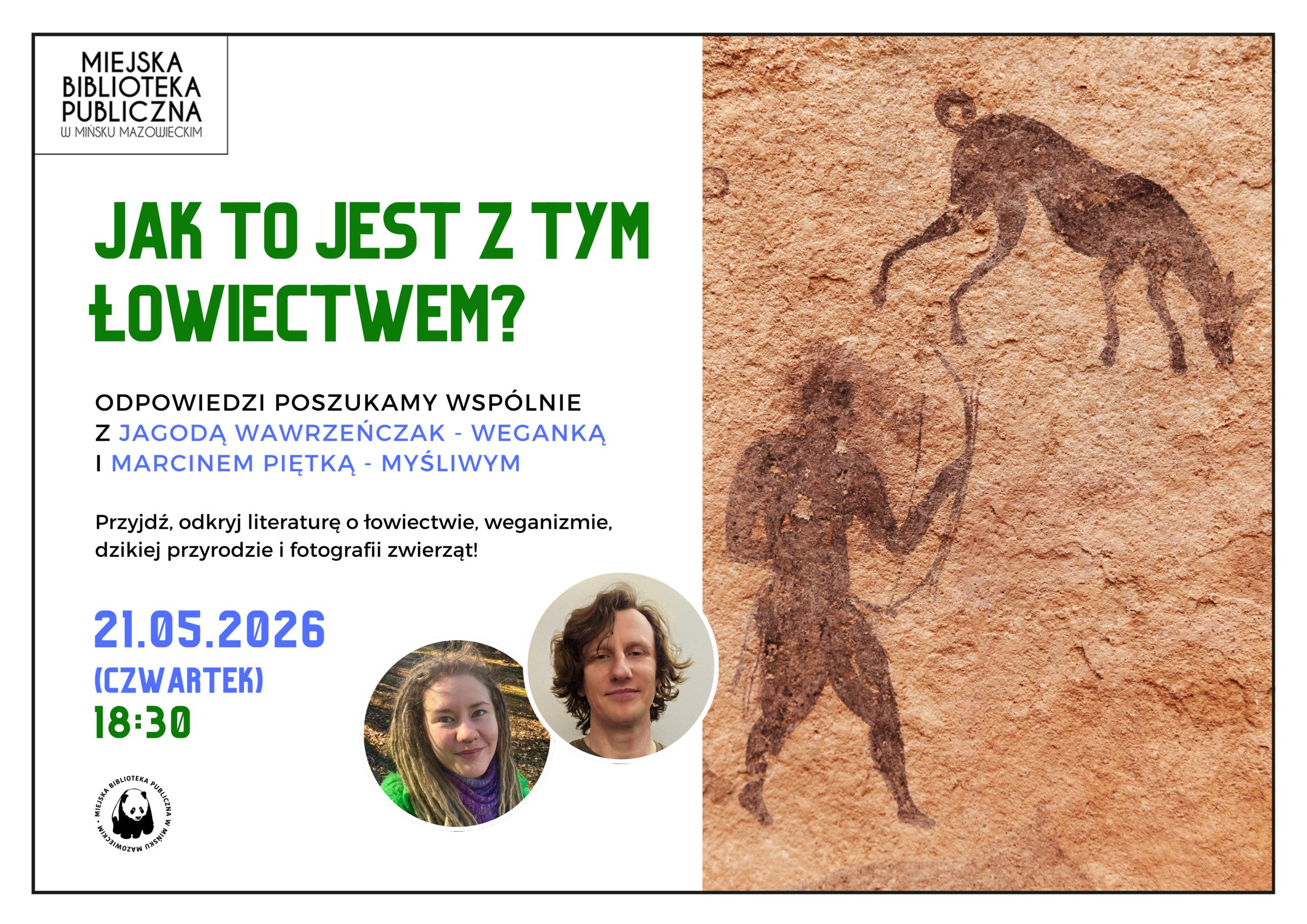 21 maja 2026 (czwartek), godz. 18:30 zapraszamy na spotkanie „Jak to jest z tym łowiectwem?”, podczas którego spróbujemy spojrzeć na temat z różnych perspektyw i poszukamy odpowiedzi na to trudne pytanie.