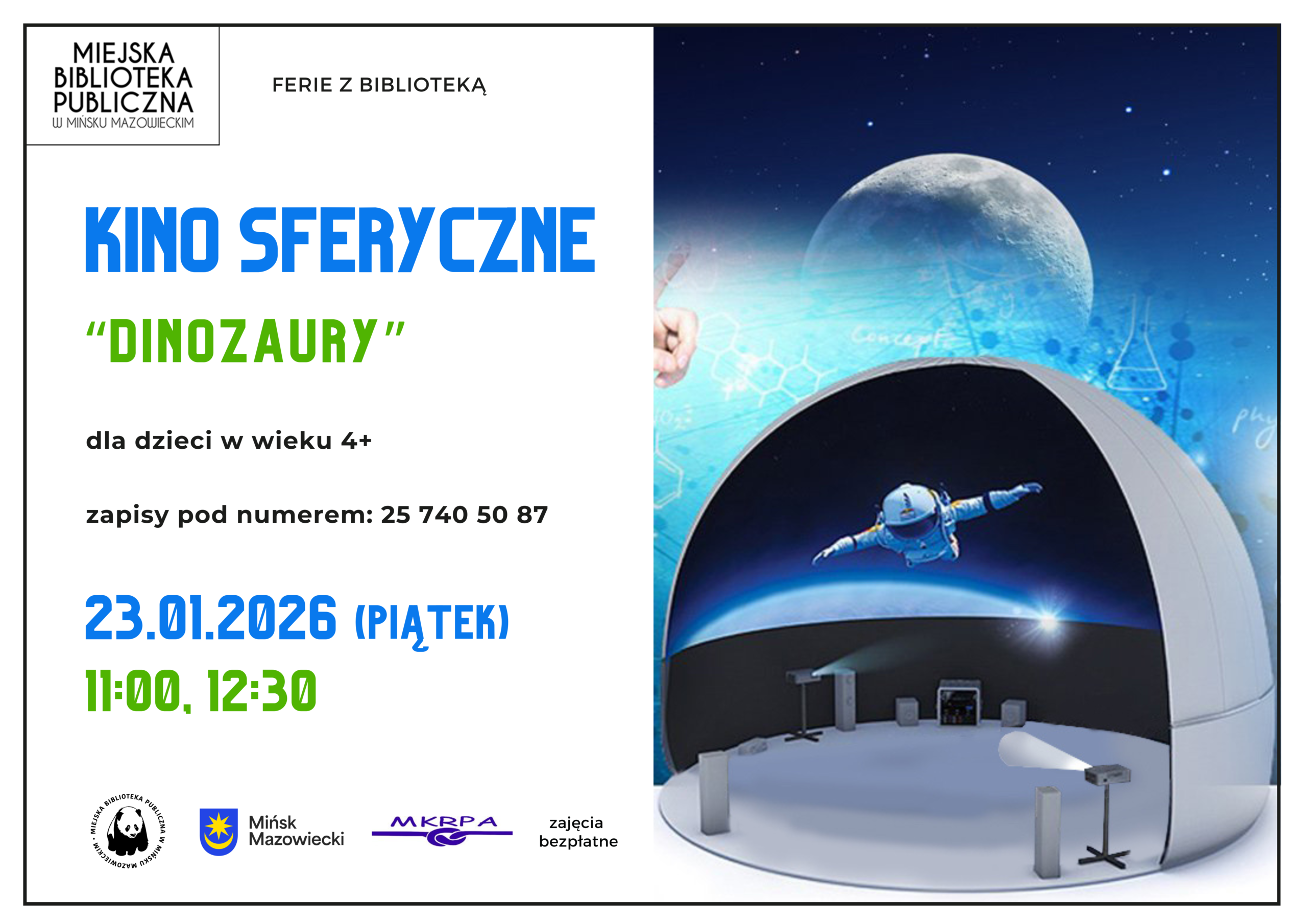 Kino sferyczne Dla dzieci 4+, zapisy w Oddziale dla Dzieci 🙂 00 dni 00 godzin 00 minut 00 sekund Data 23 stycznia, 2026 Czas 11:00 Kategoria dla dzieci