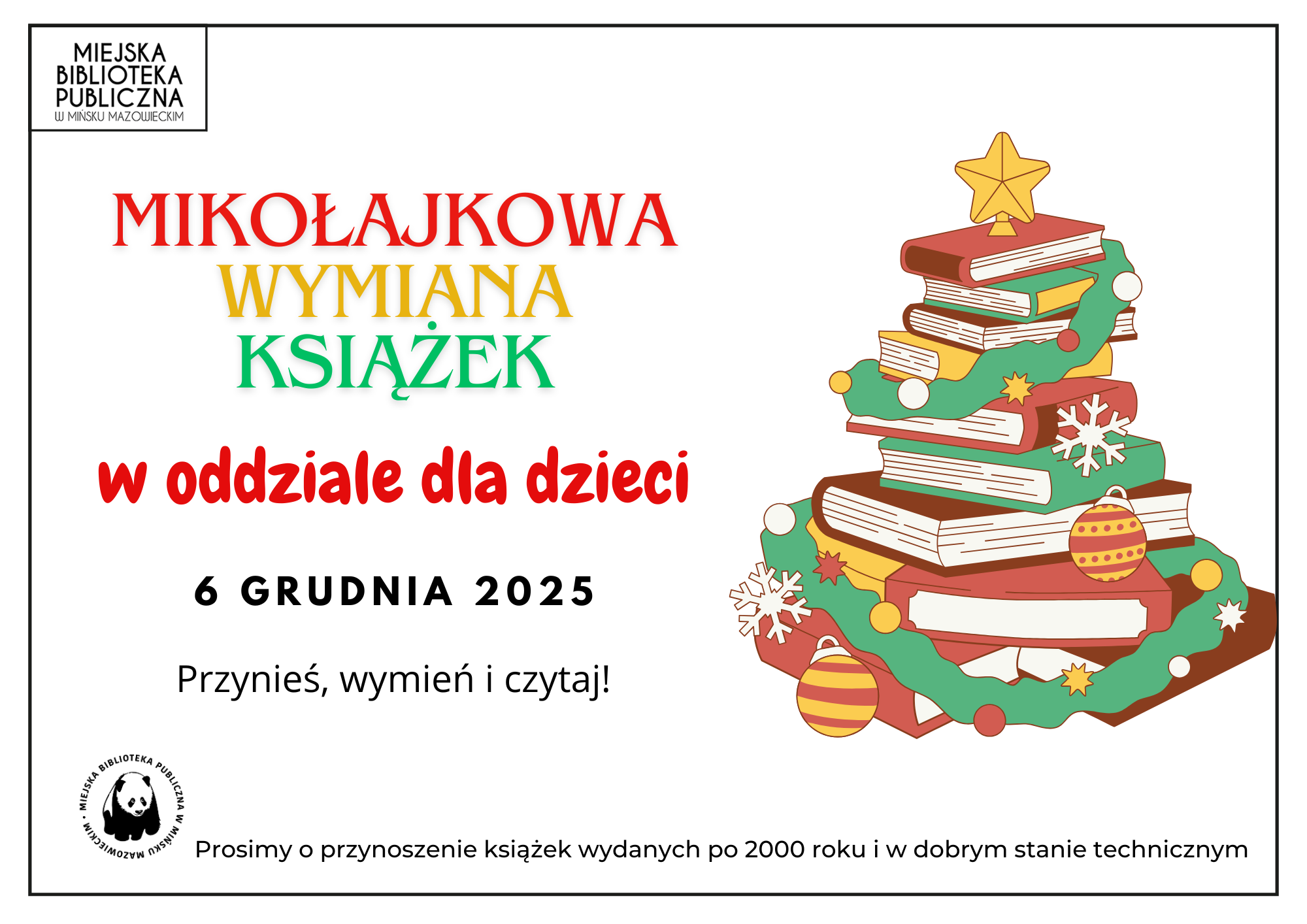 Mikołajkowa wymiana książek w Oddziale dla Dzieci 00 dni 00 godzin 00 minut 00 sekund Data 6 grudnia, 2025 Czas 10:00 Kategoria dla dzieci dla młodzieży