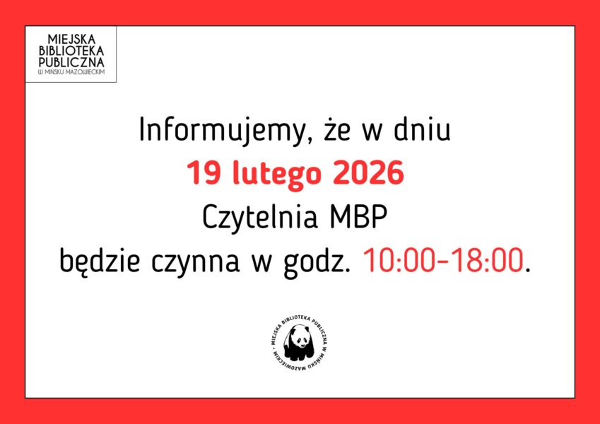Informujemy, że w dniu 19 lutego 2026 Czytelnia MBP będzie czynna w godz. 10:00-18:00. 19 lutego 2026 Bez kategorii 19 lutego 2026