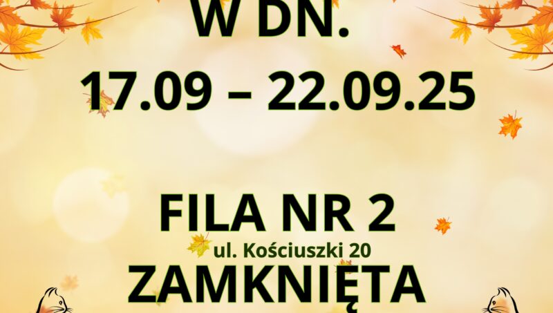 04.10 (sobota), 10:00 Weekend seniora z kulturą – warsztaty malowania na szkle (zapisy w Czytelni), wystawa “Niekonwencjonalne piękno” 08.10 (środa), 11:00 “Zawodowiec w Oddziale” – spotkanie z przedstawicielem ciekawej profesji dla grup przedszkolnych i kl. I-III SP (zapisy w ODD) 09.10 (czwartek), 18:30 Spotkanie autorskie z Jakubem Małeckim 10.10 (piątek), 11:00 Kino “Retro Brzdąc” dla […]